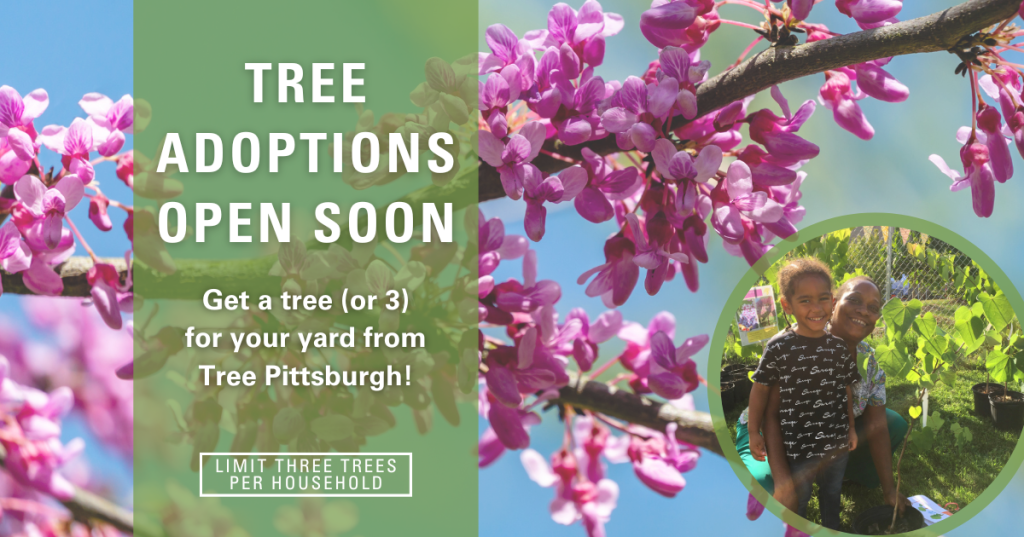 Spring Adoption LocationsMellon ParkNorth ParkPenn HillsSharpsburgSheraden ParkSouth ParkTree PittsburghWestinghouse Park Thanks for your interest in helping us grow Allegheny County’s tree canopy, one tree at a time!